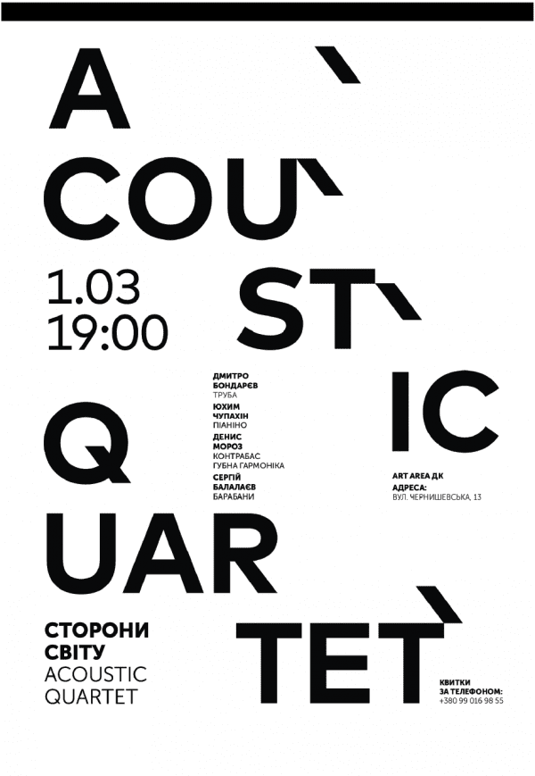 Один из самых ярких проектов украинской джазовой сцены, Acoustic Quartet представляют концертный тур "Стороны Света".