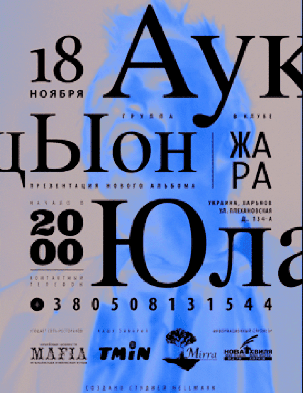 АукцЫон состоится 18 ноября 2011, 20:00, пятница в Клуб "Жара". С помощью сервиса internet-bilet.ua, Вы сможете с легкостью забронировать, заказать и купить билеты на интересующий Вас концерт, спектакль, оперу, балет, мастер-классы, спортивные и детские мероприятия, оплатив их самым удобным для Вас способом: через интернет банковской картой VISA/MasterCard, наличными или курьером, если сделаете заказ билета c доставкой.