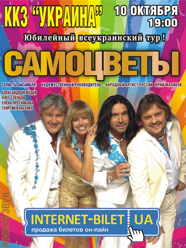 Самоцветы состоится 10 октября 2013, 19:00, четверг в ККЗ "Україна". С помощью сервиса internet-bilet.ua, Вы сможете с легкостью забронировать, заказать и купить билеты на интересующий Вас концерт, спектакль, оперу, балет, мастер-классы, спортивные и детские мероприятия, оплатив их самым удобным для Вас способом: через интернет банковской картой VISA/MasterCard, наличными или курьером, если сделаете заказ билета c доставкой.