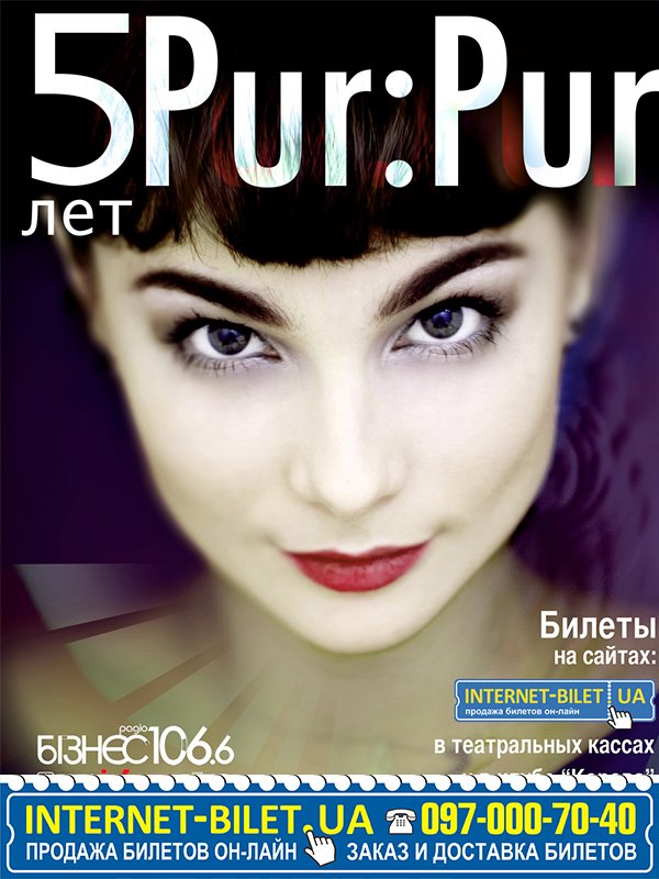 Pur:Pur состоится 7 декабря 2013, 20:00, суббота в Клуб "Корова". С помощью сервиса internet-bilet.ua, Вы сможете с легкостью забронировать, заказать и купить билеты на интересующий Вас концерт, спектакль, оперу, балет, мастер-классы, спортивные и детские мероприятия, оплатив их самым удобным для Вас способом: через интернет банковской картой VISA/MasterCard, наличными или курьером, если сделаете заказ билета c доставкой.