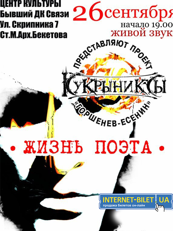 Кукрыниксы. "Жизнь поэта" состоится 26 сентября 2014, 19:00, пятница в Муниципальный центр культурных инициатив (ДК Связи). С помощью сервиса internet-bilet.ua, Вы сможете с легкостью забронировать, заказать и купить билеты на интересующий Вас концерт, спектакль, оперу, балет, мастер-классы, спортивные и детские мероприятия, оплатив их самым удобным для Вас способом: через интернет банковской картой VISA/MasterCard, наличными или курьером, если сделаете заказ билета c доставкой.
