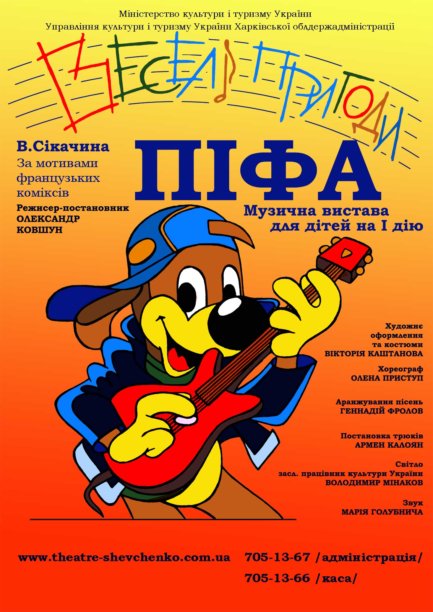 Веселі пригоди Піфа состоится 25 марта 2014, 11:00, вторник в Харьковский театр им. Т.Г. Шевченко. С помощью сервиса internet-bilet.ua, Вы сможете с легкостью забронировать, заказать и купить билеты на интересующий Вас концерт, спектакль, оперу, балет, мастер-классы, спортивные и детские мероприятия, оплатив их самым удобным для Вас способом: через интернет банковской картой VISA/MasterCard, наличными или курьером, если сделаете заказ билета c доставкой.