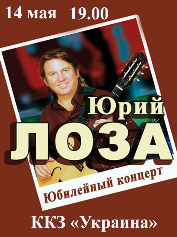 Юрий Лоза состоится 14 мая 2014, 19:00, среда в ККЗ "Україна". С помощью сервиса internet-bilet.ua, Вы сможете с легкостью забронировать, заказать и купить билеты на интересующий Вас концерт, спектакль, оперу, балет, мастер-классы, спортивные и детские мероприятия, оплатив их самым удобным для Вас способом: через интернет банковской картой VISA/MasterCard, наличными или курьером, если сделаете заказ билета c доставкой.
