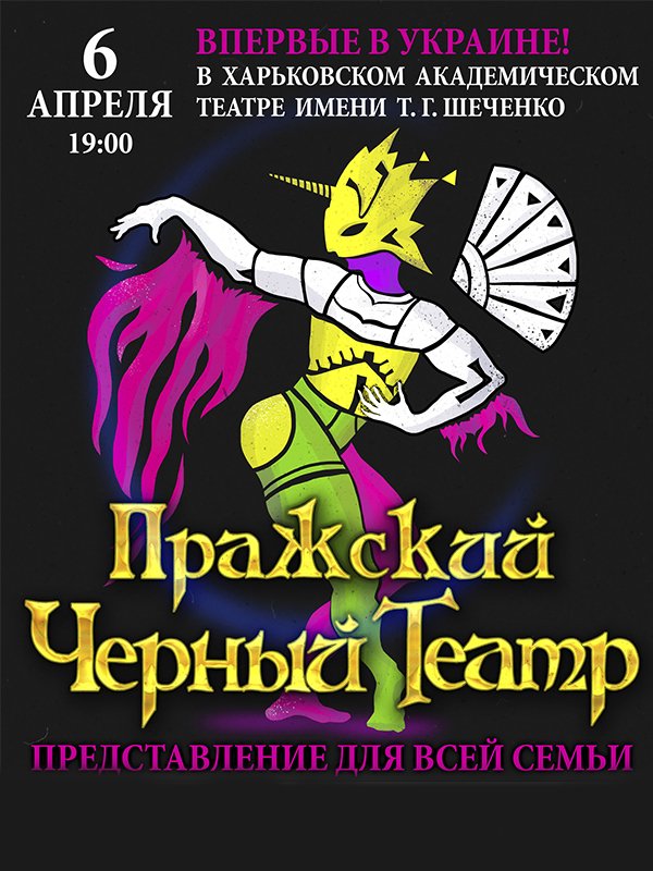 Гаснет свет и начинается представление. На сцене и на всем пространстве над ней парят, в прямом смысле слова, колоритные персонажи, расчерченные люминесцентными цветами и создающие волшебный синтез танца, оригинальной музыки, пантомимы, впечатляющих эффектов и волшебного освещения. Всё это - магический «Черный театр» из Праги, который совсем скоро впервые представит украинцам волшебное шоу – The Best Of Image. На сцене происходят настоящие чудеса:люди и вещи появляются неизвестно откуда, то уменьшаются, то увеличиваются, они летают в окружении ярких пятен света, исчезая также внезапно и удивительным образом. Всё задумано так, чтобы зритель был поглощен действом, чтобы он гадал, как актерам удается делать такие трюки. Предметы, с которыми работают артисты, создавая иллюзию магии, словно оживают. Все тут красиво и изящно. Удивительное действо дополняется люминесцентными ультрафиолетовыми декорациями. Посетителей ждет сплошная фантасмагория, которая полна оригинальностей и захватывающих неожиданностей. Для посещения этих спектаклей вовсе необязательно знать чешский язык - здесь все понятно без слов.