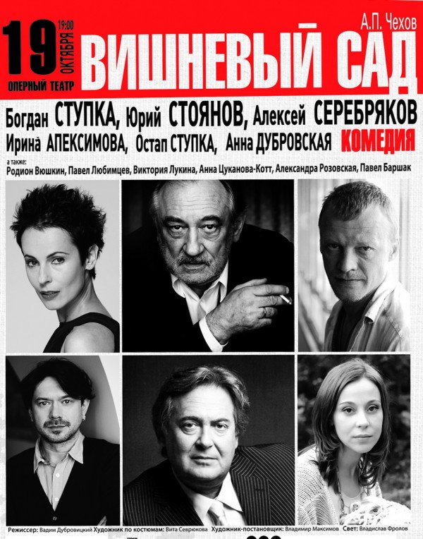 Вишневый сад состоится 19 октября 2011, 19:00, среда в ХНАТОБ. С помощью сервиса internet-bilet.ua, Вы сможете с легкостью забронировать, заказать и купить билеты на интересующий Вас концерт, спектакль, оперу, балет, мастер-классы, спортивные и детские мероприятия, оплатив их самым удобным для Вас способом: через интернет банковской картой VISA/MasterCard, наличными или курьером, если сделаете заказ билета c доставкой.