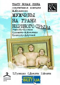 Театр "Новая Сцена". Мужчины на грани нервного срыва. состоится 24 ноября 2015, 19:00, вторник в Дом Актера. С помощью сервиса internet-bilet.ua, Вы сможете с легкостью забронировать, заказать и купить билеты на интересующий Вас концерт, спектакль, оперу, балет, мастер-классы, спортивные и детские мероприятия, оплатив их самым удобным для Вас способом: через интернет банковской картой VISA/MasterCard, наличными или курьером, если сделаете заказ билета c доставкой.