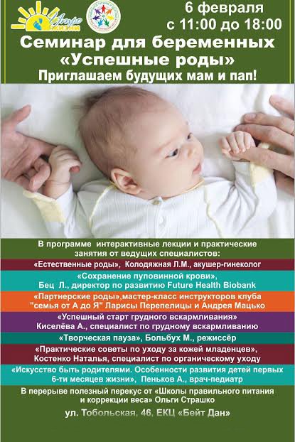Семинар «УСПЕШНЫЕ РОДЫ» состоится 6 февраля 2016, 11:00, суббота в ЕКЦ "БЕЙТ ДАН". С помощью сервиса internet-bilet.ua, Вы сможете с легкостью забронировать, заказать и купить билеты на интересующий Вас концерт, спектакль, оперу, балет, мастер-классы, спортивные и детские мероприятия, оплатив их самым удобным для Вас способом: через интернет банковской картой VISA/MasterCard, наличными или курьером, если сделаете заказ билета c доставкой.