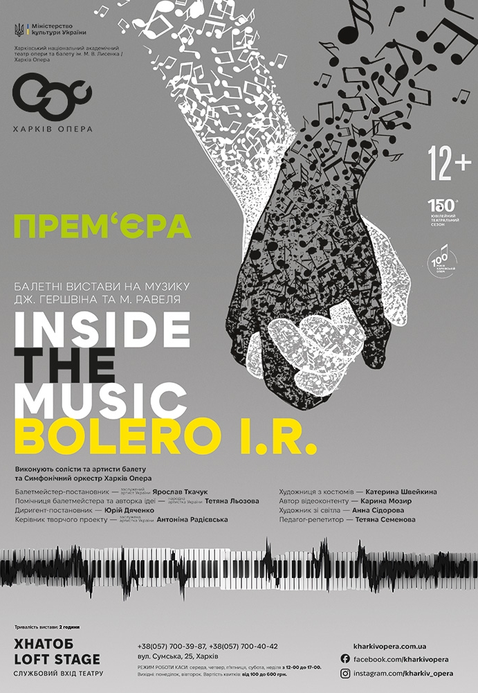 Балет "Inside the Music" "Bolero I.R.". Премьера! состоится 29 апреля 2026, 17:00, среда в ХНАТОБ LOFT STAGE. С помощью сервиса internet-bilet.ua, Вы сможете с легкостью забронировать, заказать и купить билеты на интересующий Вас концерт, спектакль, оперу, балет, мастер-классы, спортивные и детские мероприятия, оплатив их самым удобным для Вас способом: через интернет банковской картой VISA/MasterCard, наличными или курьером, если сделаете заказ билета c доставкой.