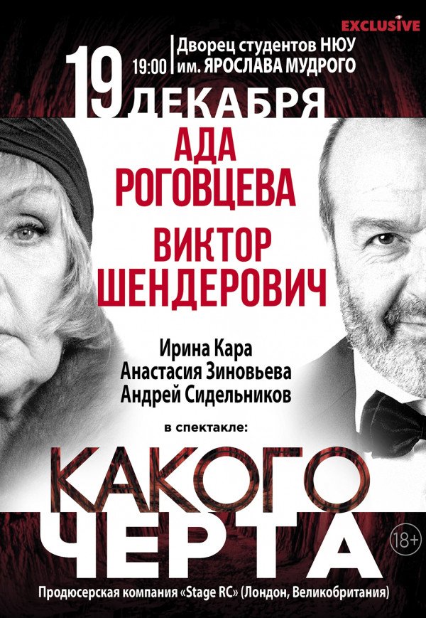 Комедия "Какого черта" состоится 19 декабря 2018, 19:00, среда в Дворец студентов НЮУ им. Ярослава Мудрого. С помощью сервиса internet-bilet.ua, Вы сможете с легкостью забронировать, заказать и купить билеты на интересующий Вас концерт, спектакль, оперу, балет, мастер-классы, спортивные и детские мероприятия, оплатив их самым удобным для Вас способом: через интернет банковской картой VISA/MasterCard, наличными или курьером, если сделаете заказ билета c доставкой.