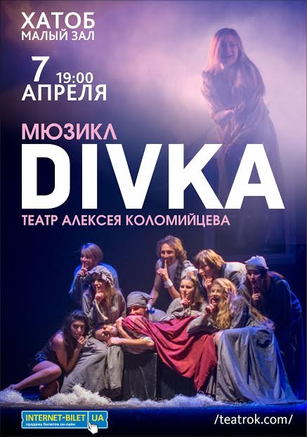 Мюзикл "Divka" состоится 7 апреля 2016, 19:00, четверг в ТЕАТРАЛЬНО-КОНЦЕРТНЫЙ ЦЕНТР. С помощью сервиса internet-bilet.ua, Вы сможете с легкостью забронировать, заказать и купить билеты на интересующий Вас концерт, спектакль, оперу, балет, мастер-классы, спортивные и детские мероприятия, оплатив их самым удобным для Вас способом: через интернет банковской картой VISA/MasterCard, наличными или курьером, если сделаете заказ билета c доставкой.