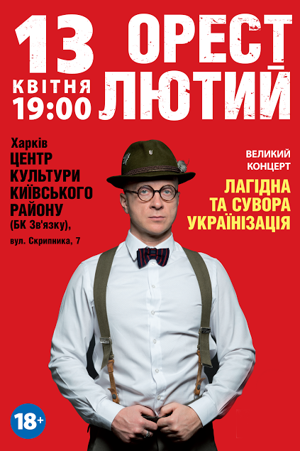 Орест Лютий состоится 13 апреля 2016, 19:00, среда в Муниципальный центр культурных инициатив (ДК Связи). С помощью сервиса internet-bilet.ua, Вы сможете с легкостью забронировать, заказать и купить билеты на интересующий Вас концерт, спектакль, оперу, балет, мастер-классы, спортивные и детские мероприятия, оплатив их самым удобным для Вас способом: через интернет банковской картой VISA/MasterCard, наличными или курьером, если сделаете заказ билета c доставкой.
