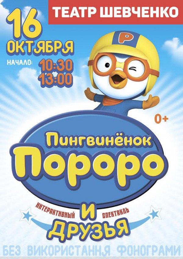 Интерактивный спектакль "Пингвиненок Пороро и друзья" (13:00) состоится 16 октября 2016, 13:00, воскресенье в Харьковский театр им. Т.Г. Шевченко. С помощью сервиса internet-bilet.ua, Вы сможете с легкостью забронировать, заказать и купить билеты на интересующий Вас концерт, спектакль, оперу, балет, мастер-классы, спортивные и детские мероприятия, оплатив их самым удобным для Вас способом: через интернет банковской картой VISA/MasterCard, наличными или курьером, если сделаете заказ билета c доставкой.