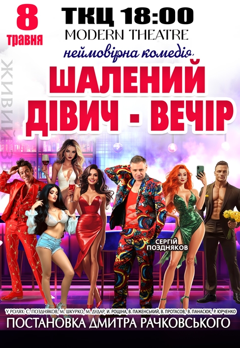 Спектакль "Безумный девичник" состоится 8 мая 2026, 18:00, пятница в ТЕАТРАЛЬНО-КОНЦЕРТНЫЙ ЦЕНТР. С помощью сервиса internet-bilet.ua, Вы сможете с легкостью забронировать, заказать и купить билеты на интересующий Вас концерт, спектакль, оперу, балет, мастер-классы, спортивные и детские мероприятия, оплатив их самым удобным для Вас способом: через интернет банковской картой VISA/MasterCard, наличными или курьером, если сделаете заказ билета c доставкой.