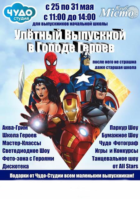 Улетный Выпускной в Городе Героев состоится 26 мая 2016, 11:00, четверг в Клуб "Мiсто". С помощью сервиса internet-bilet.ua, Вы сможете с легкостью забронировать, заказать и купить билеты на интересующий Вас концерт, спектакль, оперу, балет, мастер-классы, спортивные и детские мероприятия, оплатив их самым удобным для Вас способом: через интернет банковской картой VISA/MasterCard, наличными или курьером, если сделаете заказ билета c доставкой.