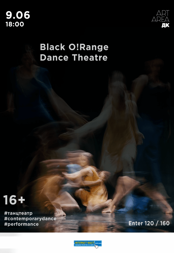 Black O!Range Dance Theatre /Kiev/ відбудеться 9 червня 2018, 18:00, субота в Art-Area ДК. За допомогою сервісу internet-bilet.ua, Ви зможете з легкістю забронювати, замовити та купити квитки на концерт, спектакль, оперу, балет, майстер-класи, спортивні та дитячі заходи, що Вас цікавлять, оплативши їх найбільш зручним для Вас способом: через інтернет банківською карткою VISA/MasterCard, готівкою або кур'єром, якщо зробите замовлення квитка з доставкою.