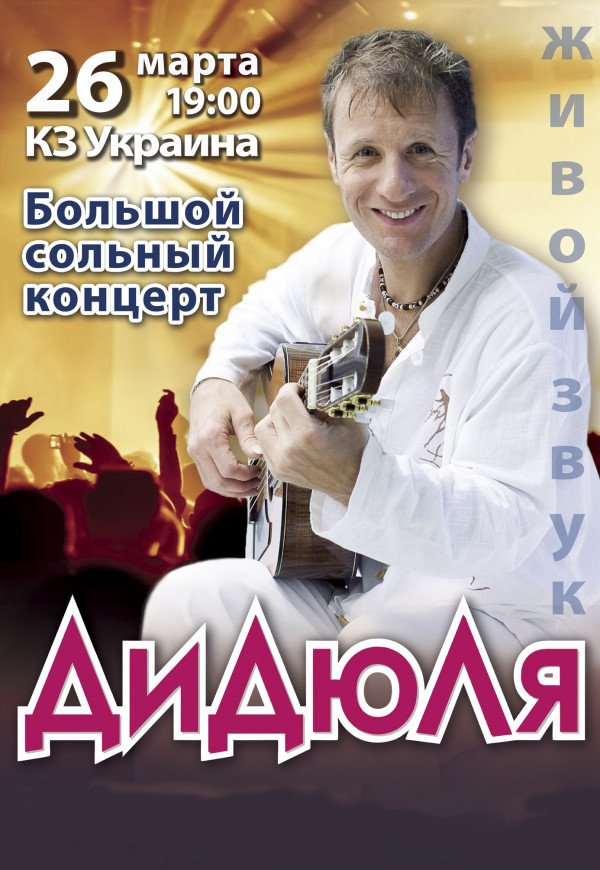 ДиДюЛя відбудеться 26 березня 2017, 19:00, неділя в ККЗ "Україна". За допомогою сервісу internet-bilet.ua, Ви зможете з легкістю забронювати, замовити та купити квитки на концерт, спектакль, оперу, балет, майстер-класи, спортивні та дитячі заходи, що Вас цікавлять, оплативши їх найбільш зручним для Вас способом: через інтернет банківською карткою VISA/MasterCard, готівкою або кур'єром, якщо зробите замовлення квитка з доставкою.