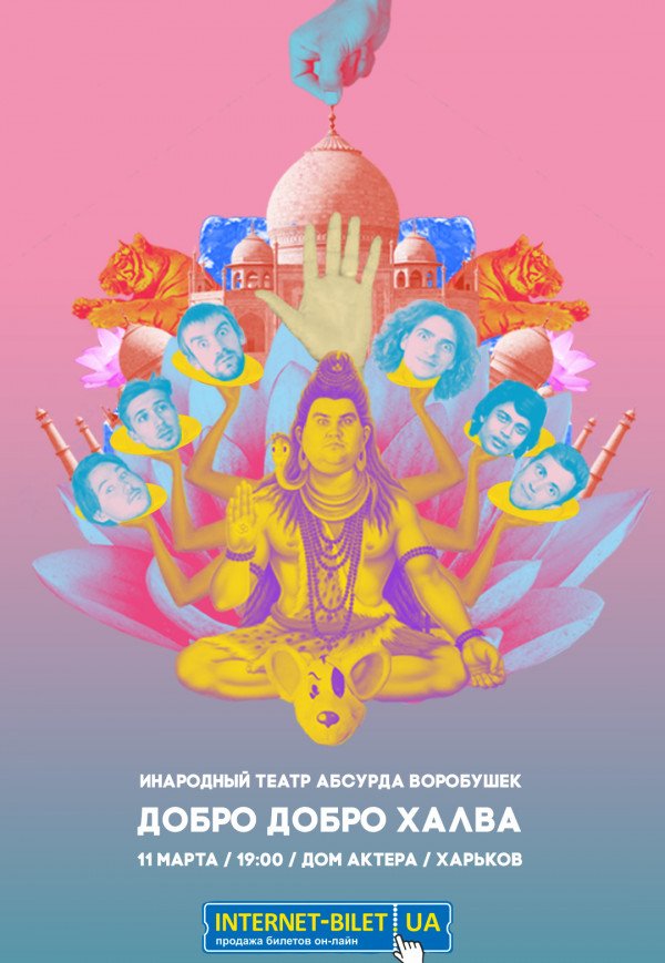 ИТА "Воробушек". "Добро Добро Халва" відбудеться 11 березня 2019, 19:00, понеділок в Будинок Актора. За допомогою сервісу internet-bilet.ua, Ви зможете з легкістю забронювати, замовити та купити квитки на концерт, спектакль, оперу, балет, майстер-класи, спортивні та дитячі заходи, що Вас цікавлять, оплативши їх найбільш зручним для Вас способом: через інтернет банківською карткою VISA/MasterCard, готівкою або кур'єром, якщо зробите замовлення квитка з доставкою.
