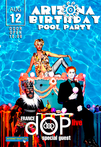 Arizona Birthday Pool Party: dOP live (France) відбудеться 12 серпня 2018, 10:00, неділя в ARIZONA place. За допомогою сервісу internet-bilet.ua, Ви зможете з легкістю забронювати, замовити та купити квитки на концерт, спектакль, оперу, балет, майстер-класи, спортивні та дитячі заходи, що Вас цікавлять, оплативши їх найбільш зручним для Вас способом: через інтернет банківською карткою VISA/MasterCard, готівкою або кур'єром, якщо зробите замовлення квитка з доставкою.