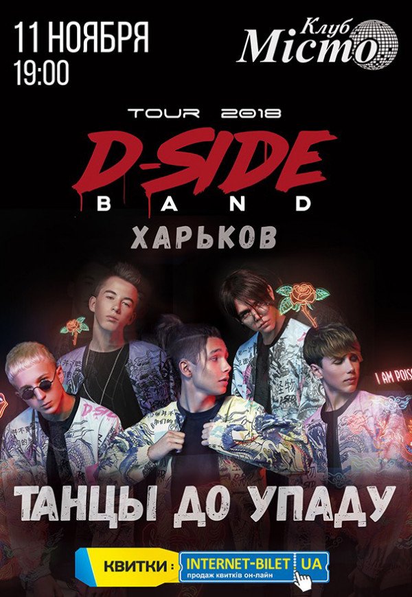 DSIDE BAND відбудеться 11 листопада 2018, 19:00, неділя в Клуб Місто. За допомогою сервісу internet-bilet.ua, Ви зможете з легкістю забронювати, замовити та купити квитки на концерт, спектакль, оперу, балет, майстер-класи, спортивні та дитячі заходи, що Вас цікавлять, оплативши їх найбільш зручним для Вас способом: через інтернет банківською карткою VISA/MasterCard, готівкою або кур'єром, якщо зробите замовлення квитка з доставкою.