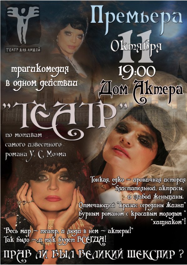 Театр відбудеться 11 жовтня 2012, 19:00, четвер в Будинок Актора. За допомогою сервісу internet-bilet.ua, Ви зможете з легкістю забронювати, замовити та купити квитки на концерт, спектакль, оперу, балет, майстер-класи, спортивні та дитячі заходи, що Вас цікавлять, оплативши їх найбільш зручним для Вас способом: через інтернет банківською карткою VISA/MasterCard, готівкою або кур'єром, якщо зробите замовлення квитка з доставкою.