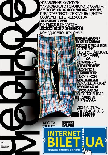 Черное молоко відбудеться 10 жовтня 2012, 19:00, середа в Будинок Актора. За допомогою сервісу internet-bilet.ua, Ви зможете з легкістю забронювати, замовити та купити квитки на концерт, спектакль, оперу, балет, майстер-класи, спортивні та дитячі заходи, що Вас цікавлять, оплативши їх найбільш зручним для Вас способом: через інтернет банківською карткою VISA/MasterCard, готівкою або кур'єром, якщо зробите замовлення квитка з доставкою.