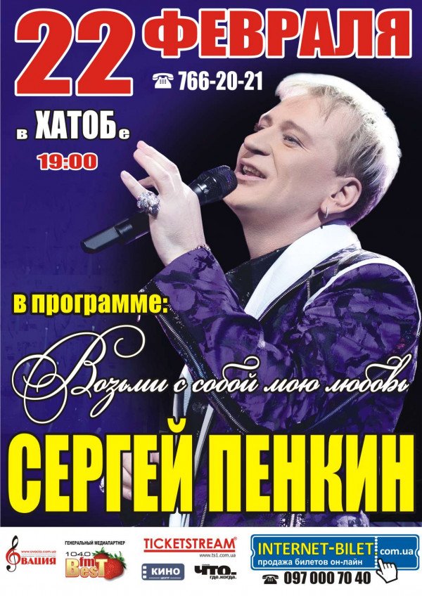 Сергей Пенкин відбудеться 22 лютого 2012, 19:00, середа в ХНАТОБ. За допомогою сервісу internet-bilet.ua, Ви зможете з легкістю забронювати, замовити та купити квитки на концерт, спектакль, оперу, балет, майстер-класи, спортивні та дитячі заходи, що Вас цікавлять, оплативши їх найбільш зручним для Вас способом: через інтернет банківською карткою VISA/MasterCard, готівкою або кур'єром, якщо зробите замовлення квитка з доставкою.