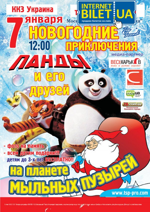 Придбати квиток на Новогодние приключения Панды и его друзей на планете мыльных пузырей можливо не відходячи від комп'ютера!