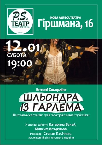 Шльондра із Гарлема відбудеться 12 січня 2013, 19:00, субота в P.S театр. За допомогою сервісу internet-bilet.ua, Ви зможете з легкістю забронювати, замовити та купити квитки на концерт, спектакль, оперу, балет, майстер-класи, спортивні та дитячі заходи, що Вас цікавлять, оплативши їх найбільш зручним для Вас способом: через інтернет банківською карткою VISA/MasterCard, готівкою або кур'єром, якщо зробите замовлення квитка з доставкою.