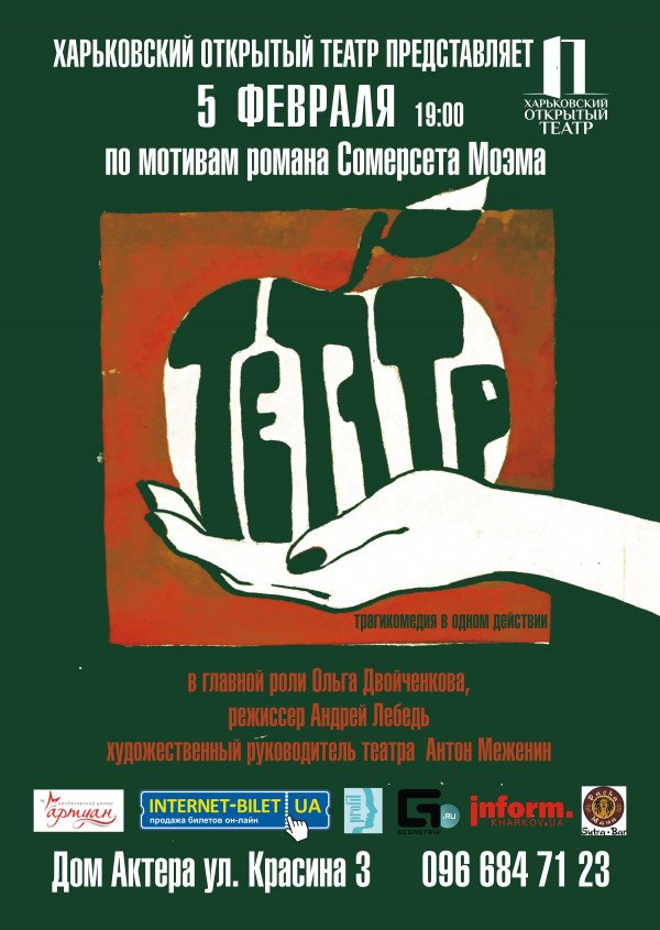 Театр відбудеться 5 лютого 2013, 19:00, вівторок в Будинок Актора. За допомогою сервісу internet-bilet.ua, Ви зможете з легкістю забронювати, замовити та купити квитки на концерт, спектакль, оперу, балет, майстер-класи, спортивні та дитячі заходи, що Вас цікавлять, оплативши їх найбільш зручним для Вас способом: через інтернет банківською карткою VISA/MasterCard, готівкою або кур'єром, якщо зробите замовлення квитка з доставкою.
