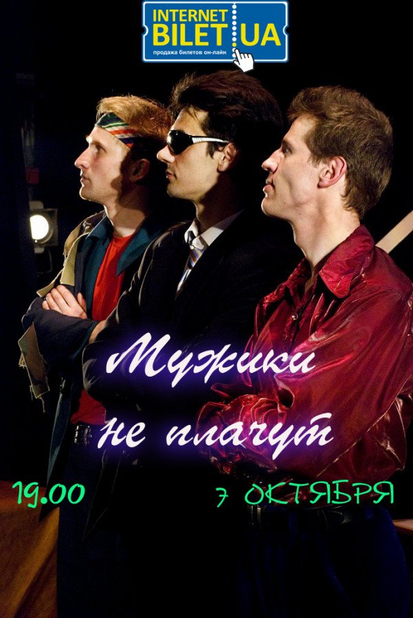 Мужики не плачут відбудеться 11 лютого 2013, 19:00, понеділок в Будинок Актора. За допомогою сервісу internet-bilet.ua, Ви зможете з легкістю забронювати, замовити та купити квитки на концерт, спектакль, оперу, балет, майстер-класи, спортивні та дитячі заходи, що Вас цікавлять, оплативши їх найбільш зручним для Вас способом: через інтернет банківською карткою VISA/MasterCard, готівкою або кур'єром, якщо зробите замовлення квитка з доставкою.