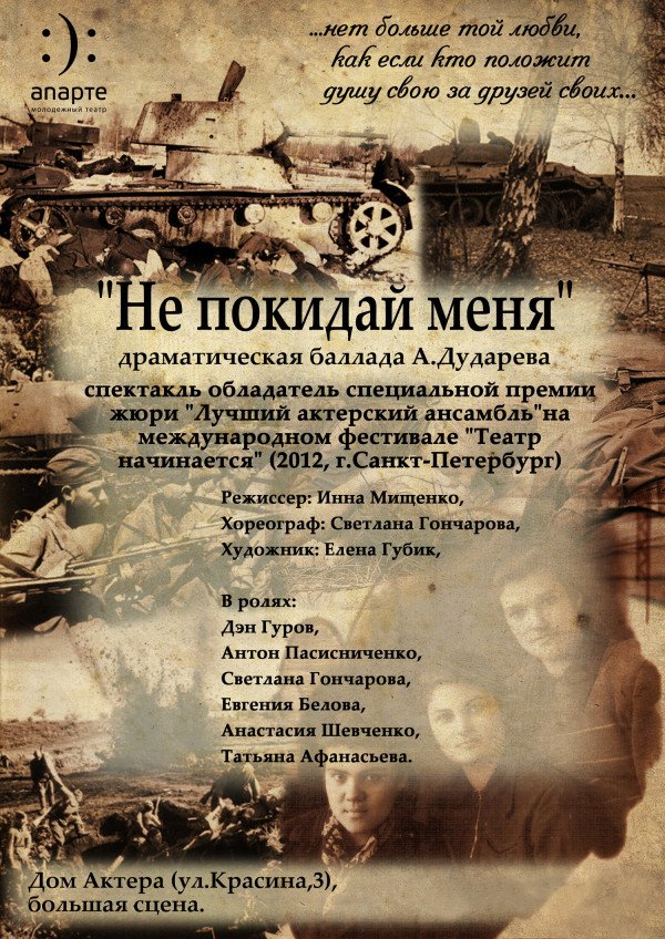 Придбати квиток на Театр "Апарте" Не покидай меня можливо не відходячи від комп'ютера!