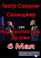 Театр "Сахалин". Над пропастью во ржи відбудеться 6 травня 2013, 19:00, понеділок в Будинок Актора. За допомогою сервісу internet-bilet.ua, Ви зможете з легкістю забронювати, замовити та купити квитки на концерт, спектакль, оперу, балет, майстер-класи, спортивні та дитячі заходи, що Вас цікавлять, оплативши їх найбільш зручним для Вас способом: через інтернет банківською карткою VISA/MasterCard, готівкою або кур'єром, якщо зробите замовлення квитка з доставкою.