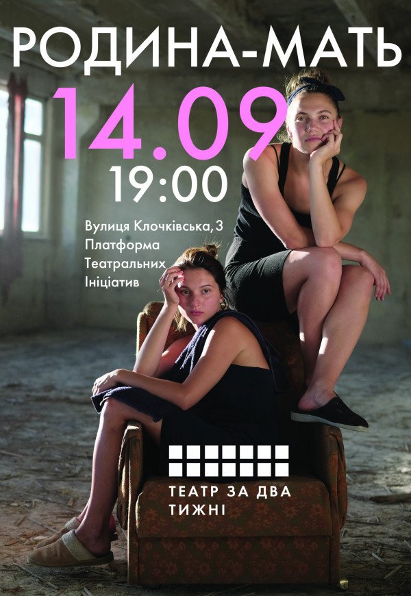 Вистава "Родіна-МАТЬ" відбудеться 14 вересня 2018, 19:00, п’ятниця в Платформа театральних Ініціатив. За допомогою сервісу internet-bilet.ua, Ви зможете з легкістю забронювати, замовити та купити квитки на концерт, спектакль, оперу, балет, майстер-класи, спортивні та дитячі заходи, що Вас цікавлять, оплативши їх найбільш зручним для Вас способом: через інтернет банківською карткою VISA/MasterCard, готівкою або кур'єром, якщо зробите замовлення квитка з доставкою.