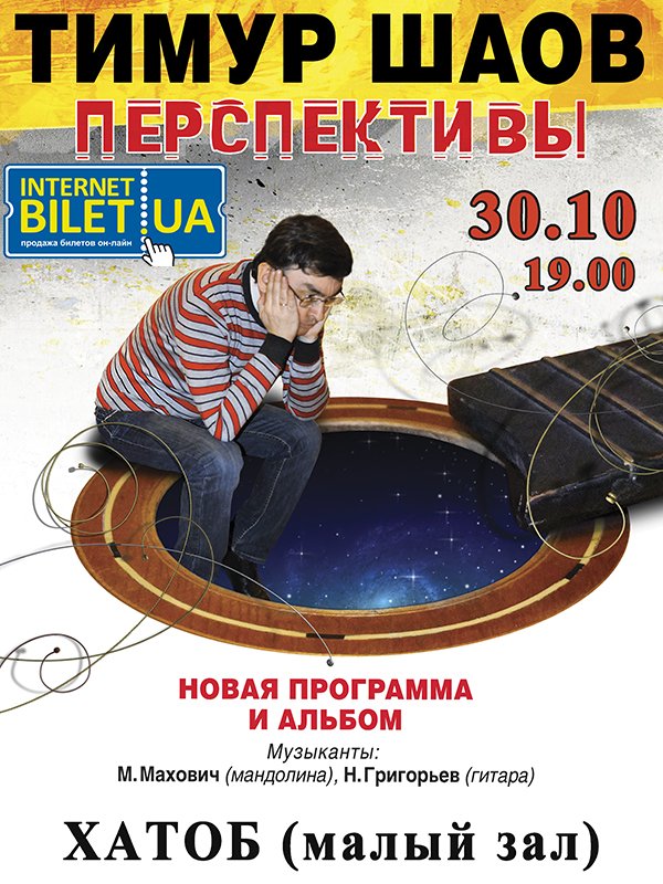 Тимур Шаов відбудеться 30 жовтня 2013, 19:30, середа в ТЕАТРАЛЬНО-КОНЦЕРТНИЙ ЦЕНТР. За допомогою сервісу internet-bilet.ua, Ви зможете з легкістю забронювати, замовити та купити квитки на концерт, спектакль, оперу, балет, майстер-класи, спортивні та дитячі заходи, що Вас цікавлять, оплативши їх найбільш зручним для Вас способом: через інтернет банківською карткою VISA/MasterCard, готівкою або кур'єром, якщо зробите замовлення квитка з доставкою.