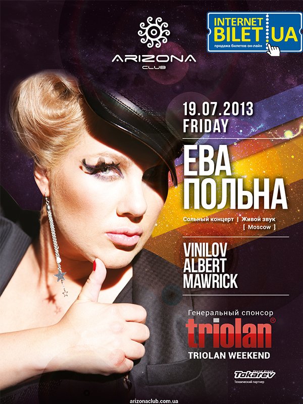 19 июля в « Arizona Club » Ева Польна исполнит для вас свои лучшие песни!