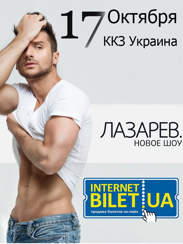 Сергей Лазарев с новым шоу «Лазарев.» відбудеться 17 жовтня 2013, 19:00, четвер в ККЗ "Україна". За допомогою сервісу internet-bilet.ua, Ви зможете з легкістю забронювати, замовити та купити квитки на концерт, спектакль, оперу, балет, майстер-класи, спортивні та дитячі заходи, що Вас цікавлять, оплативши їх найбільш зручним для Вас способом: через інтернет банківською карткою VISA/MasterCard, готівкою або кур'єром, якщо зробите замовлення квитка з доставкою.
