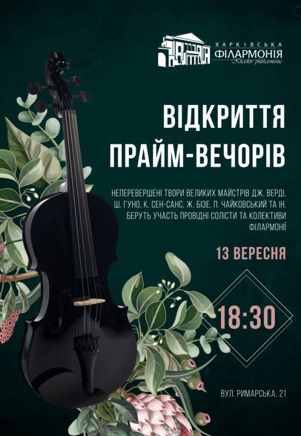 Відкриття прайм-вечорів відбудеться 13 вересня 2019, 18:30, п’ятниця в Харківська філармонія (Велика зала). За допомогою сервісу internet-bilet.ua, Ви зможете з легкістю забронювати, замовити та купити квитки на концерт, спектакль, оперу, балет, майстер-класи, спортивні та дитячі заходи, що Вас цікавлять, оплативши їх найбільш зручним для Вас способом: через інтернет банківською карткою VISA/MasterCard, готівкою або кур'єром, якщо зробите замовлення квитка з доставкою.