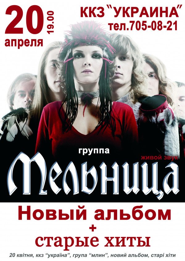 Мельница відбудеться 20 квітня 2012, 19:00, п’ятниця в ККЗ "Україна". За допомогою сервісу internet-bilet.ua, Ви зможете з легкістю забронювати, замовити та купити квитки на концерт, спектакль, оперу, балет, майстер-класи, спортивні та дитячі заходи, що Вас цікавлять, оплативши їх найбільш зручним для Вас способом: через інтернет банківською карткою VISA/MasterCard, готівкою або кур'єром, якщо зробите замовлення квитка з доставкою.