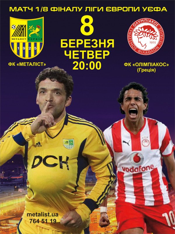 Уважаемые болельщики! В продажу поступили билеты на первый матч 1/8 Финала Лиги Европы УЕФА, в котором "Металлист" принимает греческий "Олимпиакос". Матч состоится 8 марта в 20-00 на стадионе "Металлист".
