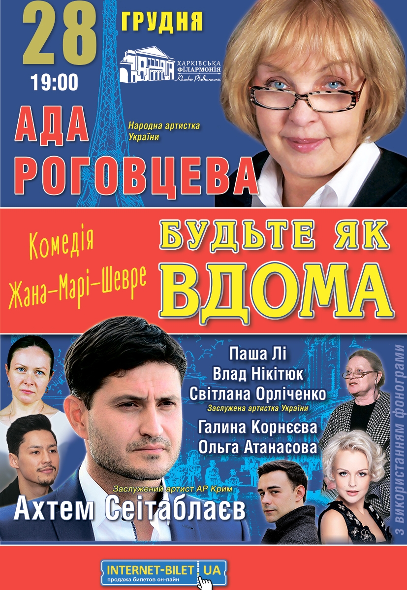 Комедія. "Будьте як вдома" відбудеться 28 грудня 2021, 19:00, вівторок в Харківська філармонія (Велика зала). За допомогою сервісу internet-bilet.ua, Ви зможете з легкістю забронювати, замовити та купити квитки на концерт, спектакль, оперу, балет, майстер-класи, спортивні та дитячі заходи, що Вас цікавлять, оплативши їх найбільш зручним для Вас способом: через інтернет банківською карткою VISA/MasterCard, готівкою або кур'єром, якщо зробите замовлення квитка з доставкою.