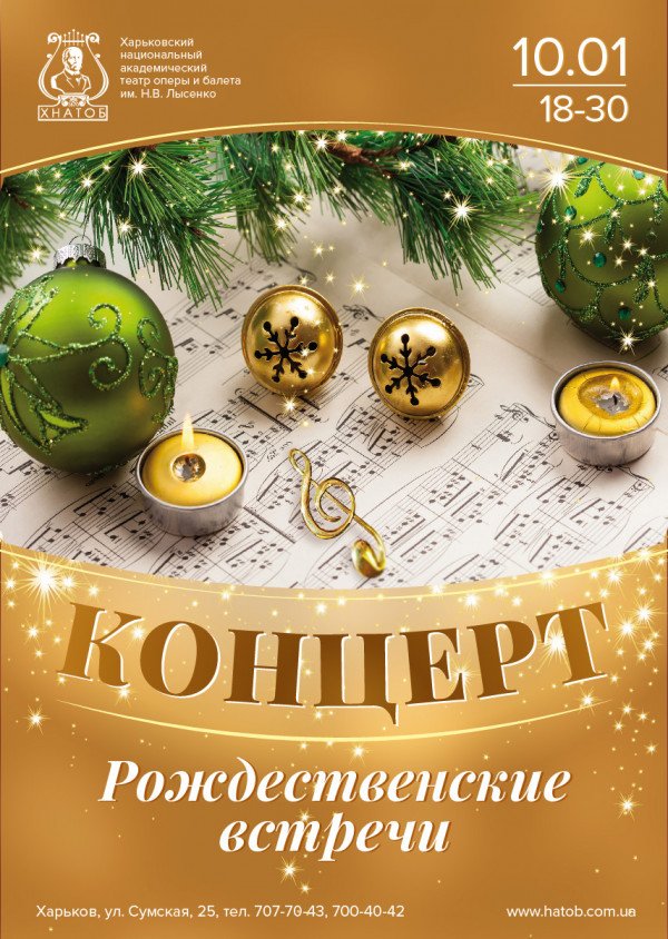 «Рождественские встречи» - это замечательный концерт, который соберет для встречи со своими любимыми зрителями плеяду самых известных звезд харьковской оперы. Симфонический оркестр под управлением дирижеров П. Багинского и А. Голобородько даст возможность по-новому услышать любимые с детства мелодии!