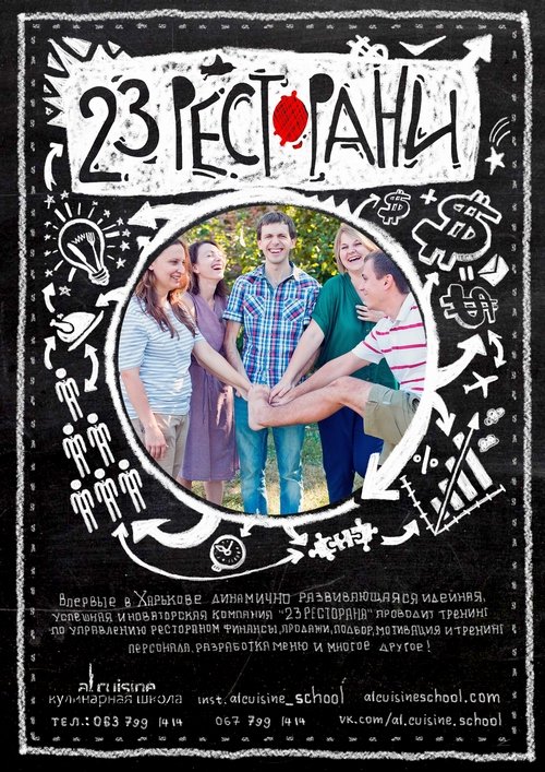 10-11 апреля в кулинарной школе Al Cuisine пройдет тренинг по управлению рестораном от представителей успешной компании “23 ресторани”.Эта компания открыла уже 5 заведений в Ивано-Франковске, но в планах у ее основателей открыть 23 “живых ресторана”. Концепцию таких заведений можно описать просто - “рестораны с душой”. Компания обращает особое внимание на успешную работу в команде, отношение к посетителям, инновационность и экологичность своих проектов. Сегодня заведения сети стали символом динамичности в ресторанном деле нашей страны. "23 ресторани" ставят перед собой амбициозные задачи и всегда добиваются успеха. Приготовить традиционное итальянское блюдо, используя исключительно украинские продукты? Для такой команды это не проблема! Сделать ресторан идеальным местом для душевного общения в непринужденной обстановке? Подготовить суперпрофессиональную команду, где каждый работник на своем месте? Все эти цели достижимы, когда за дело берутся эти ребята. Они тщательно обучают своих работников, и сами регулярно посещают тренинги лучших экспертов, продолжая учиться. Рестораны сети советует авторитетная в нашей стране передача " Инспектор Фреймут", а их основатели удостаиваются премий как лучшие работники ресторанного бизнеса. Отмечают успех " 23 ресторанов" и такие строгие критики, как Александр Мусатов и Арам Мнацаканов.