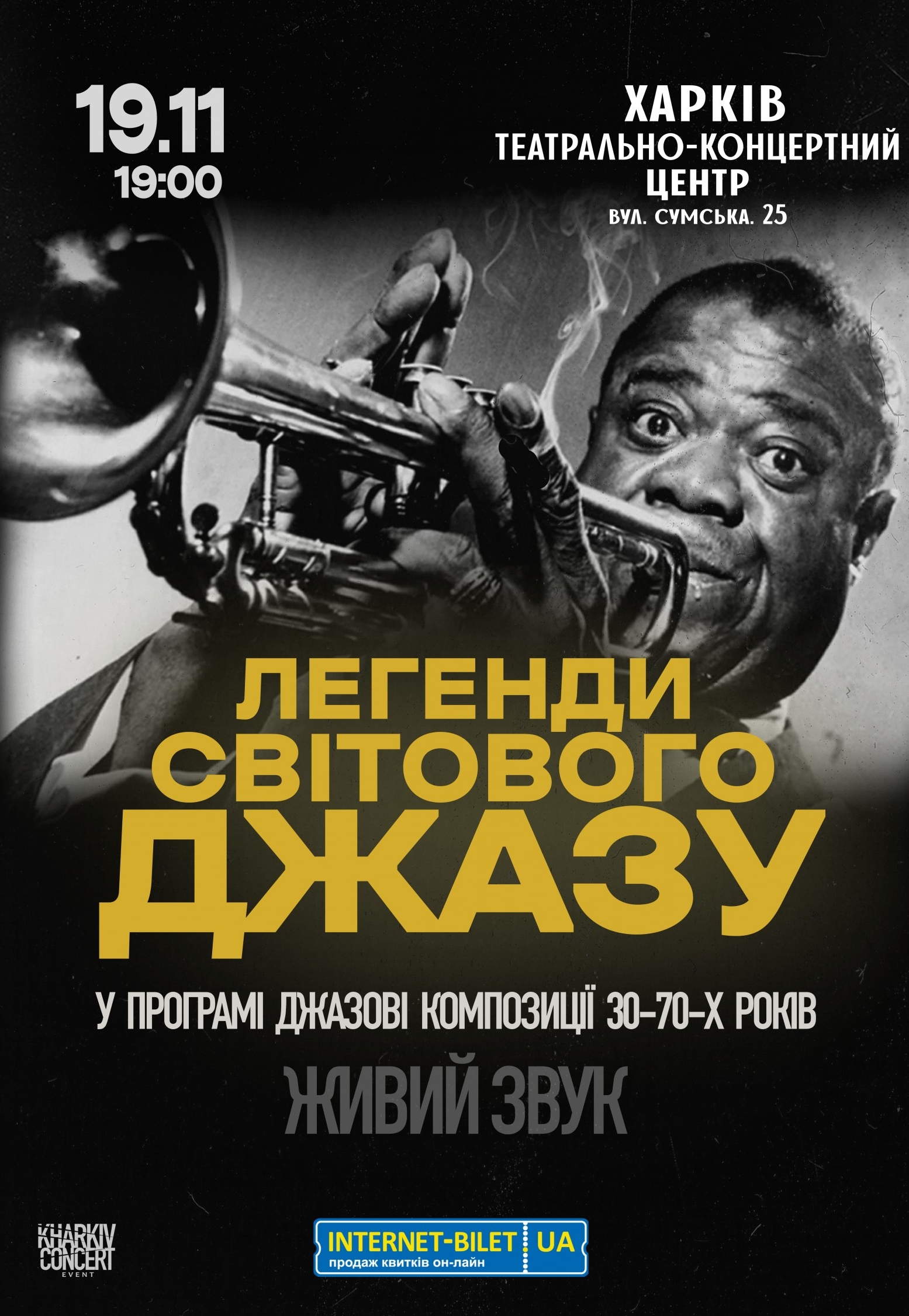 Легенди Світового Джазу відбудеться 19 листопада 2025, 19:00, середа в ТЕАТРАЛЬНО-КОНЦЕРТНИЙ ЦЕНТР. За допомогою сервісу internet-bilet.ua, Ви зможете з легкістю забронювати, замовити та купити квитки на концерт, спектакль, оперу, балет, майстер-класи, спортивні та дитячі заходи, що Вас цікавлять, оплативши їх найбільш зручним для Вас способом: через інтернет банківською карткою VISA/MasterCard, готівкою або кур'єром, якщо зробите замовлення квитка з доставкою.