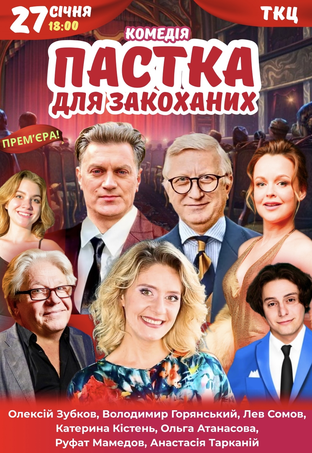 Вистава "Пастка для закоханих" відбудеться 27 січня 2026, 18:00, вівторок в ТЕАТРАЛЬНО-КОНЦЕРТНИЙ ЦЕНТР. За допомогою сервісу internet-bilet.ua, Ви зможете з легкістю забронювати, замовити та купити квитки на концерт, спектакль, оперу, балет, майстер-класи, спортивні та дитячі заходи, що Вас цікавлять, оплативши їх найбільш зручним для Вас способом: через інтернет банківською карткою VISA/MasterCard, готівкою або кур'єром, якщо зробите замовлення квитка з доставкою.