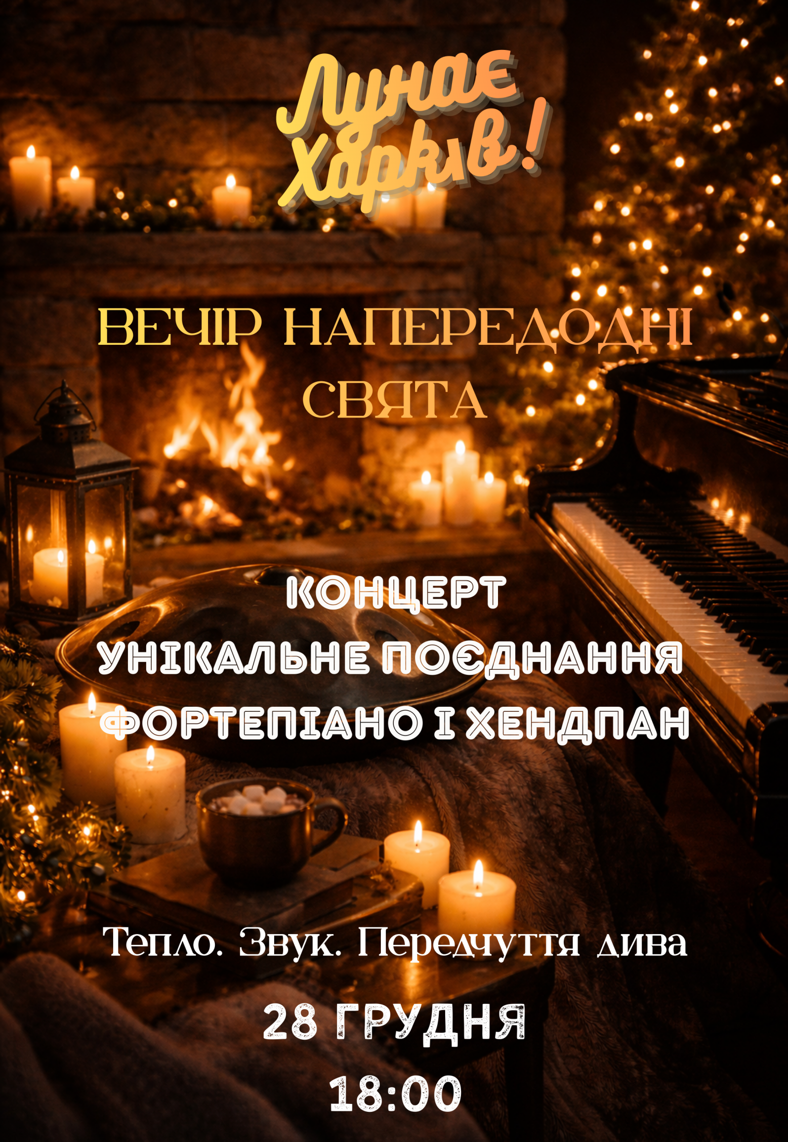 Вечір напередодні свята відбудеться 28 грудня 2025, 18:00, неділя в Простір Співаючих Тибетських Чаш. За допомогою сервісу internet-bilet.ua, Ви зможете з легкістю забронювати, замовити та купити квитки на концерт, спектакль, оперу, балет, майстер-класи, спортивні та дитячі заходи, що Вас цікавлять, оплативши їх найбільш зручним для Вас способом: через інтернет банківською карткою VISA/MasterCard, готівкою або кур'єром, якщо зробите замовлення квитка з доставкою.