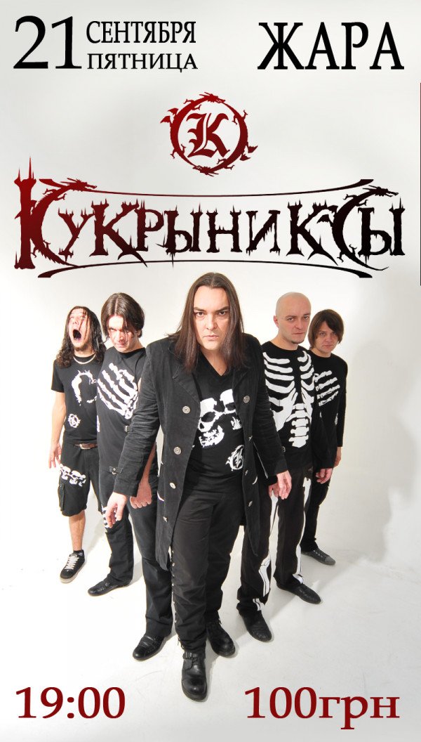 Кукрыниксы відбудеться 21 вересня 2012, 19:00, п’ятниця в Клуб "Жара". За допомогою сервісу internet-bilet.ua, Ви зможете з легкістю забронювати, замовити та купити квитки на концерт, спектакль, оперу, балет, майстер-класи, спортивні та дитячі заходи, що Вас цікавлять, оплативши їх найбільш зручним для Вас способом: через інтернет банківською карткою VISA/MasterCard, готівкою або кур'єром, якщо зробите замовлення квитка з доставкою.