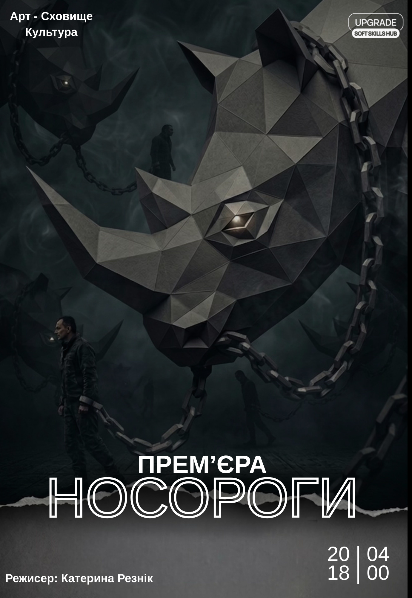Вистава "Носороги". Прем'єра! відбудеться 20 квітня 2026, 18:00, понеділок в Арт-Сховище Культура. За допомогою сервісу internet-bilet.ua, Ви зможете з легкістю забронювати, замовити та купити квитки на концерт, спектакль, оперу, балет, майстер-класи, спортивні та дитячі заходи, що Вас цікавлять, оплативши їх найбільш зручним для Вас способом: через інтернет банківською карткою VISA/MasterCard, готівкою або кур'єром, якщо зробите замовлення квитка з доставкою.