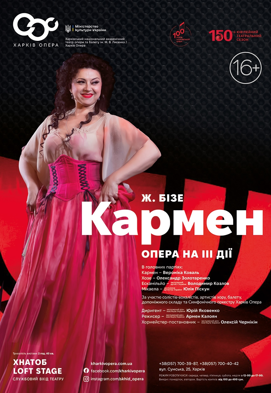 Опера "Кармен" відбудеться 25 січня 2026, 16:00, неділя в ХНАТОБ LOFT STAGE. За допомогою сервісу internet-bilet.ua, Ви зможете з легкістю забронювати, замовити та купити квитки на концерт, спектакль, оперу, балет, майстер-класи, спортивні та дитячі заходи, що Вас цікавлять, оплативши їх найбільш зручним для Вас способом: через інтернет банківською карткою VISA/MasterCard, готівкою або кур'єром, якщо зробите замовлення квитка з доставкою.