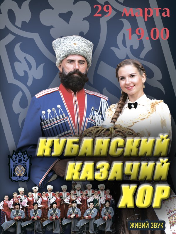 Кубанский казачий хор відбудеться 29 березня 2014, 19:00, субота в ХНАТОБ. За допомогою сервісу internet-bilet.ua, Ви зможете з легкістю забронювати, замовити та купити квитки на концерт, спектакль, оперу, балет, майстер-класи, спортивні та дитячі заходи, що Вас цікавлять, оплативши їх найбільш зручним для Вас способом: через інтернет банківською карткою VISA/MasterCard, готівкою або кур'єром, якщо зробите замовлення квитка з доставкою.