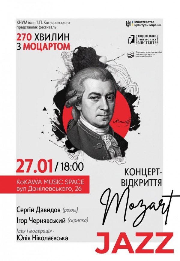 Концерт-відкриття трохи неочікувано відкриється джазовим концертом. Моцарт і джаз? Здавалося б, це зовсім різні світи! Моцарт - витончений віденський класик; джаз - мистецтво, народжене культурою афроамериканців. Моцарт - це опера й симфонія, гармонійність і вишуканість, джаз - це імпровізація і свобода, свінг і музична всеїдність.